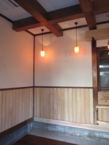 カウンターはお客様からお持ち込み頂きました。本体横、正面の壁には大谷石です。
